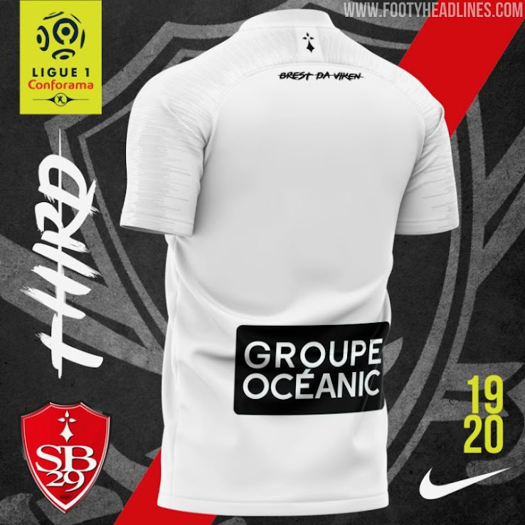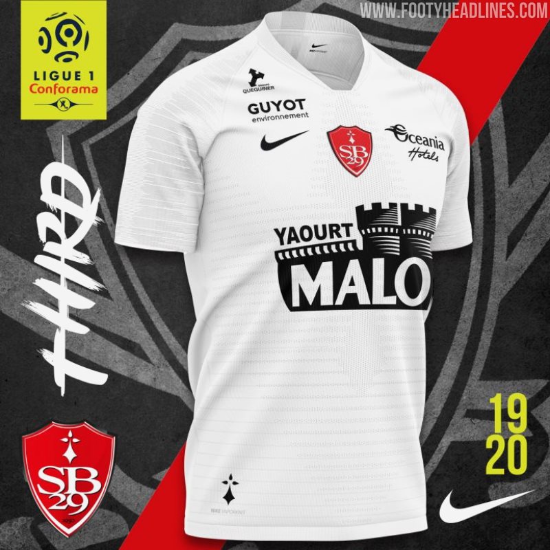 Das dritte Nike Stade Brest 2019-20 Trikot, das hauptsächlich weiß ist, basiert auf der gleichen Vorlage.