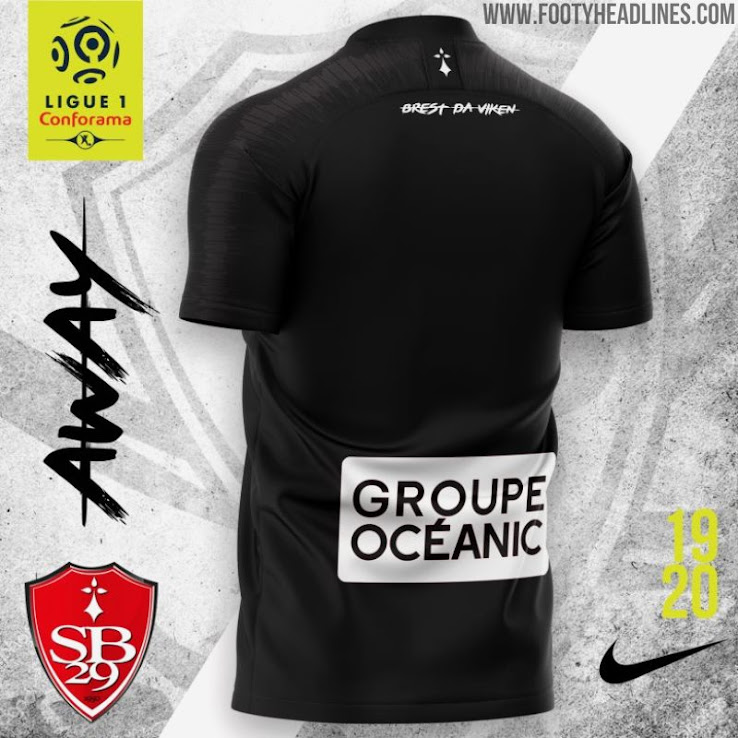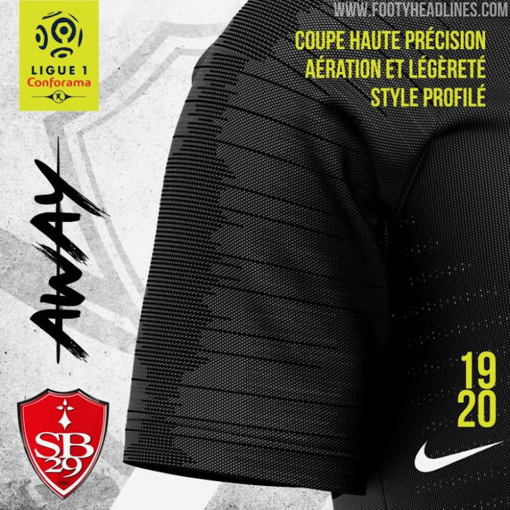 Das hauptsächlich schwarze Nike Stade Brest 2019-20 Trikot basiert auf der gleichen Vorlage.