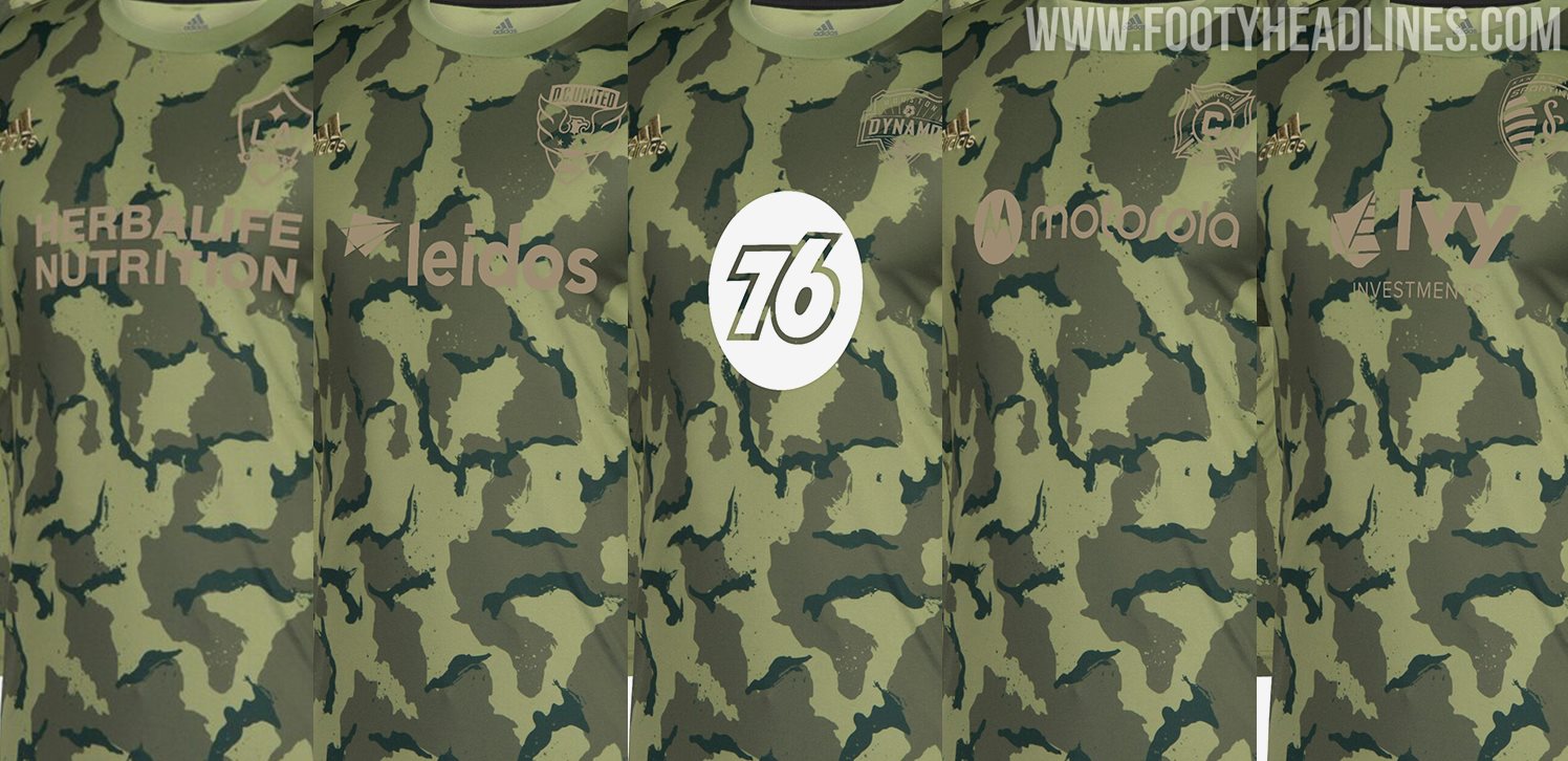 Wie die Adidas MLS Unabhängigkeitstag und Pride Aufwärmtrikots wird auch das Militär-Trikot für alle Teams in der MLS vorgestellt. Die Trikots für die 24 verschiedenen Teams enthalten das jeweilige Logo und die Sponsoren der einzelnen Teams, während der Rest des Designs gleich ist.