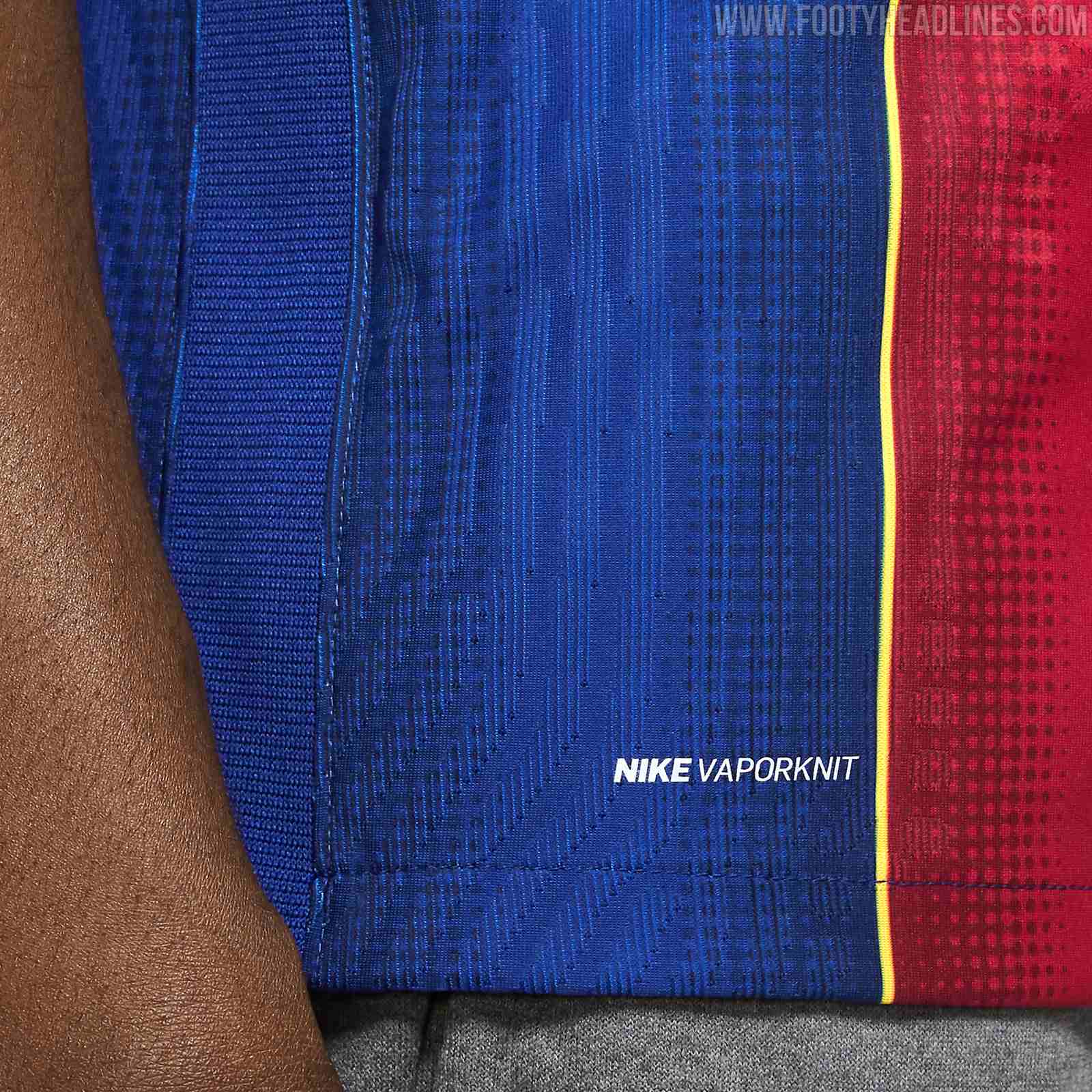 In Anlehnung an die 1920er Jahre befinden sich dünne goldene Streifen zwischen dem traditionellen Rot und Blau des Nike FC Barcelona 2020-21 Trikots. Ein solcher Stil wurde vom katalanischen Giganten während der 1920er Jahre verwendet, auch beim Gewinn der Copa del Rey im Jahr 1928 und der ersten La Liga im Jahr 1929.