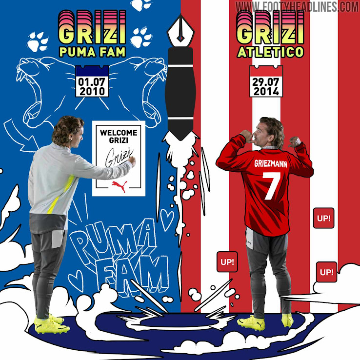 Puma und Antoine Griezmann haben heute Morgen einen Fußballschuh in limitierter Auflage auf Basis des Future 4.1 Netfit vorgestellt, um das 10-jährige Jubiläum des Profi-Debüts des Barca-Spielers zu feiern. Die Puma "Grizi 10-Year Edition" Schuhe wurden von Griezmann selbst mitentworfen.