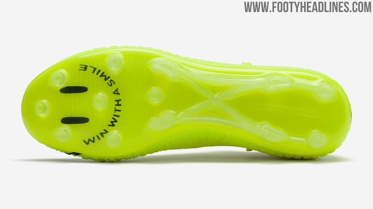 Auf der Einlegesohle ist Griezmanns offizielles "AG"-Logo zu sehen, während ein weiterer Smiley, zusammen mit dem Motto des Spielers "Win with a Smile", auf die Außensohle gedruckt ist.