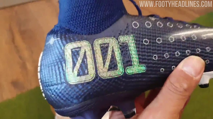 Die Dream Speed Nike Mercurial verfügen über ein einzigartiges Design in Blue Void / Metallic Silver / White / Black. Die Schuhe setzen auf einen mutigen "001" Druck auf der Außenseite der rechten Ferse und Zielsymbolen sowie runden Punkten auf dem Obermaterial.
