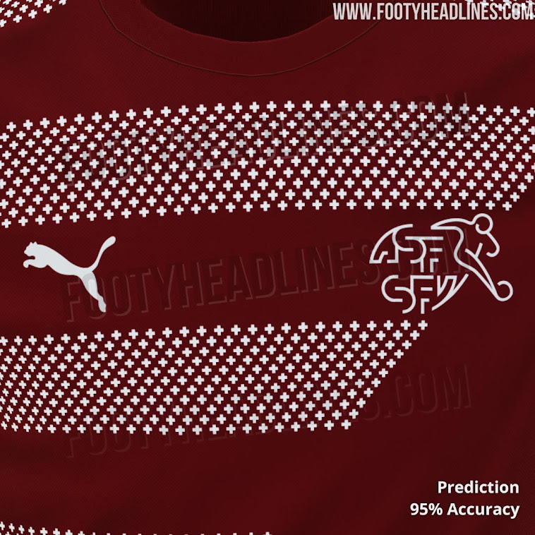 Das Schweiz 2020 Puma Trikot hat eine dunkelrote Grundlage mit weißen Logos.