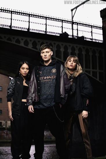 Das neue Auswärtstrikot weist ein auffälliges Muster auf, das von Castlefield und dem Bridgewater-Kanal inspiriert ist. Dieser Bereich steht symbolisch für Manchester Vergangenheit, Gegenwart und Zukunft."