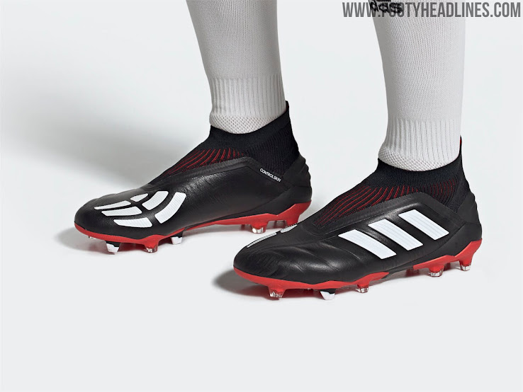 Dieses Bild zeigt den schwarz / weiß / roten Adidas Predator 19+ "Mania".