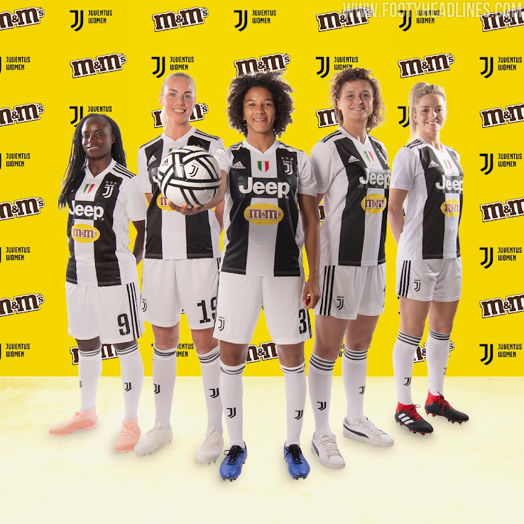 Die Trikots der Juventus Frauen weisen nicht nur das Jeep-Logo, sondern auch das Logo der Mars-Marke M&M's darunter auf. Dies zerstört nicht nur den modischen Look etwas, da das Logo von M&M in voller Farbe erscheint.