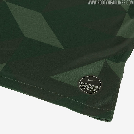 Das neue Atlético Nacional Auswärtstrikot ist überwiegend dunkelgrün mit einem subtilen geometrischen Camo-artigen Muster, das die Gesamtheit des Designs einhüllt.