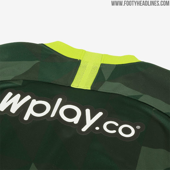 Der Kragen und die Ärmelbündchen des neuen Atlético Nacional 2020 Trikots, das auf Nikes aktuellem Template basiert, sind grün.