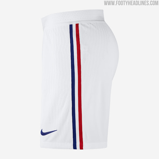 Das Nike Frankreich 2020 Trikot, das überwiegend weiß ist, führt einen sehr schlichten Look ein, um das altmodisch angehauchte Home zu begleiten.
