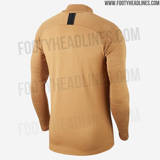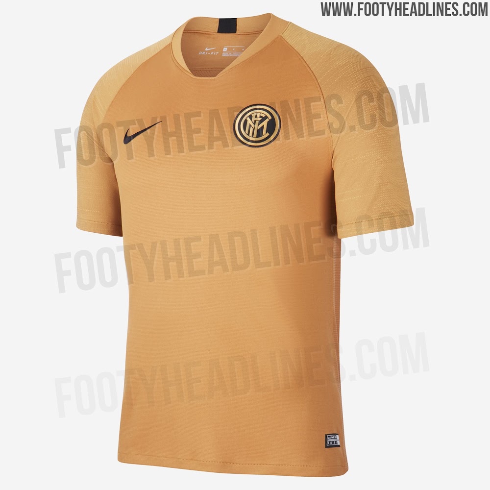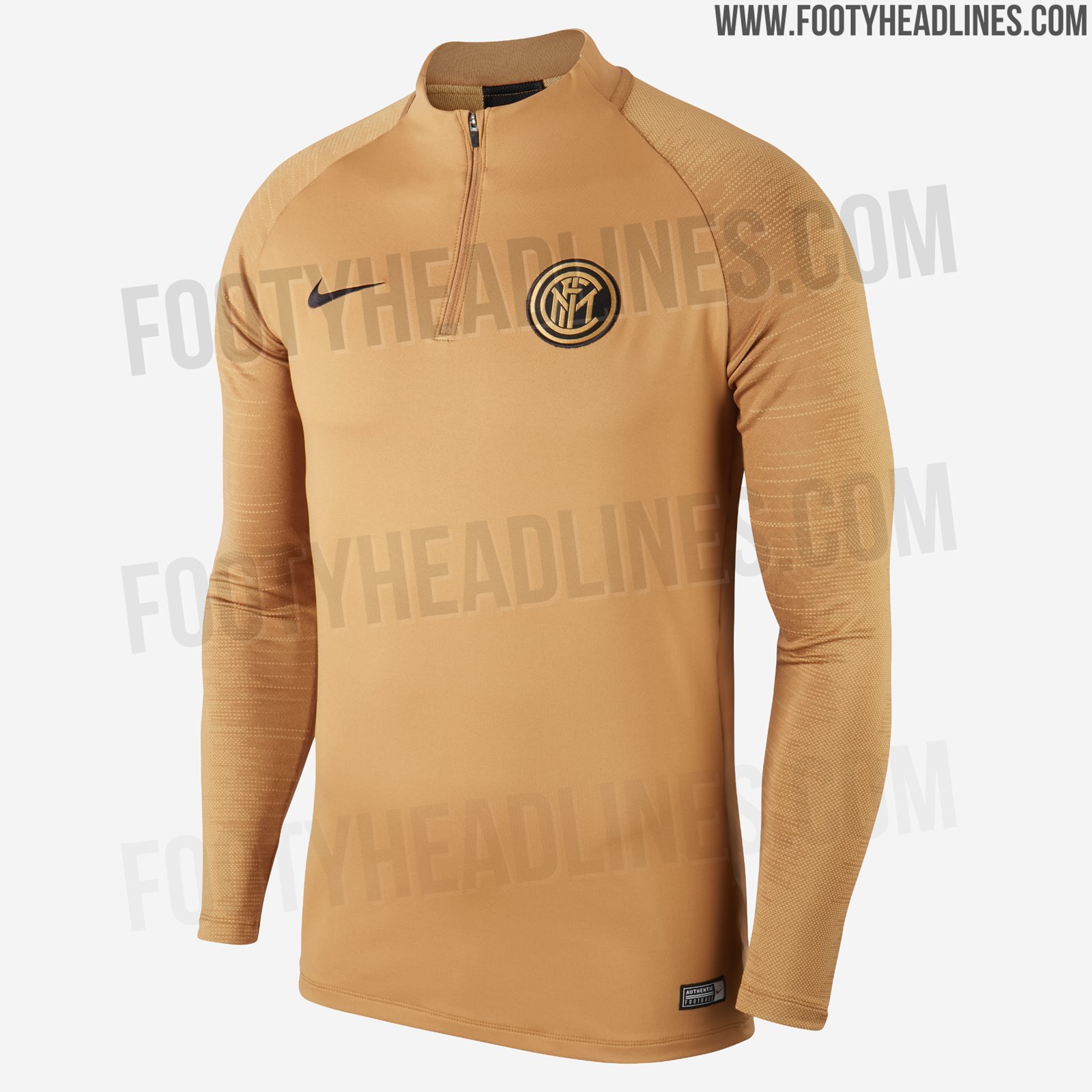 Das neue Inter Mailand 2020 Trainings-Trikot, das auf dem Nike 2019-2020 Trainings-Template basiert, führt ein stilvolles Design in Gold mit schwarzen Logos ein. Die Ärmel setzen auf das berüchtigte Nike Vapor Aeroswift Grafikmuster.