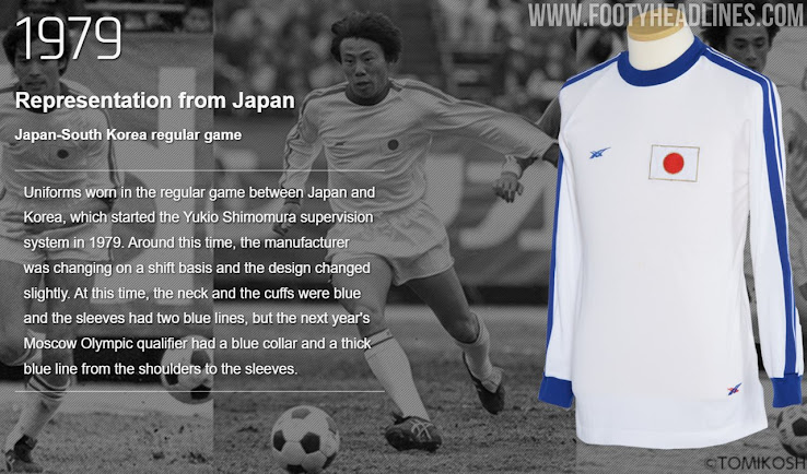 Die japanische Marke Mizuno war der erste Ausrüster, der 1979 sein Logo auf Japans Trikots trug, während Puma und Adidas in den 1980er Jahren folgten.