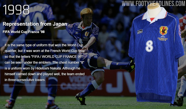 Adidas wurde im April 1998 zum Trikot-Ausrüster des Landes und beendete damit die Phase, in der Japan keinen offiziellen Trikot-Ausrüster hatte, sondern seine Trikots selbst produzierte - Damals wurde Japans Trikots nur das Logo einer Marke hinzugefügt (daher hatten sie das gleiche Design wie Adidas und Asics, zum Beispiel[1997 / 1998]).