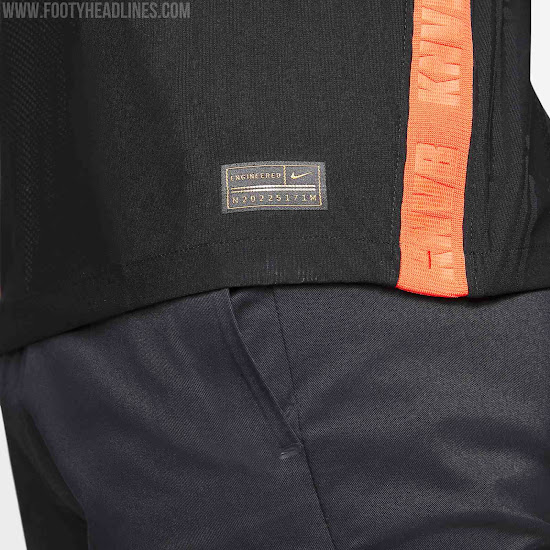 Schwarz wird für die Logos auf dem Nike Niederlande 2020-21 Trikot verwendet, sowie den V-Kragen. Es ist der gleiche wie beim PSG 20-21 Trikot und ein Zick-Zack-Detail auf den Seiten.