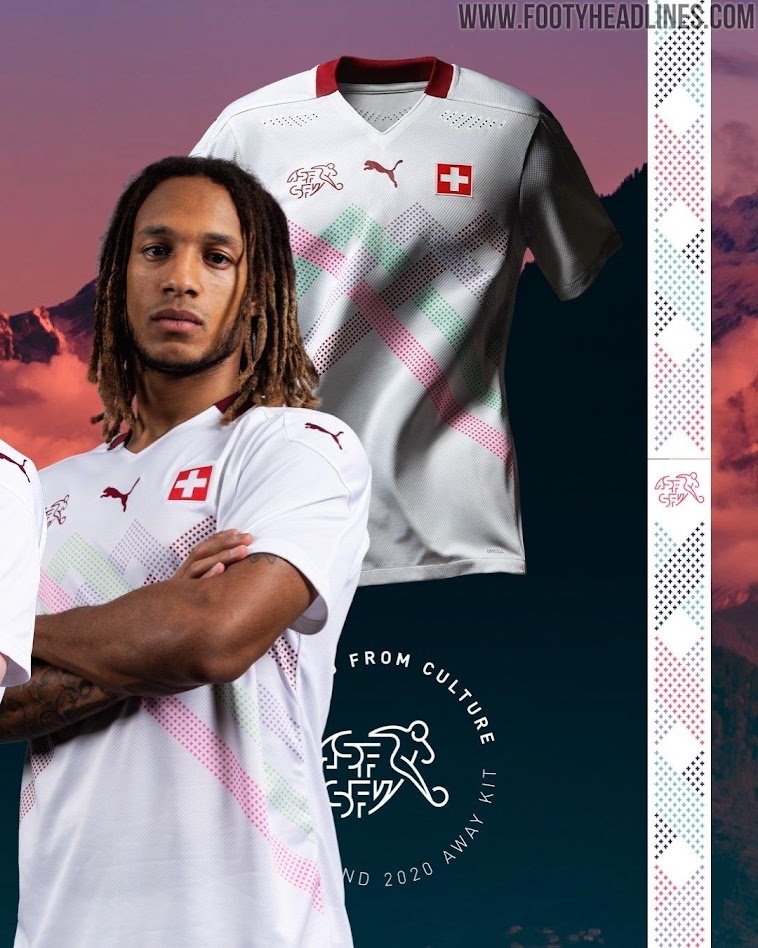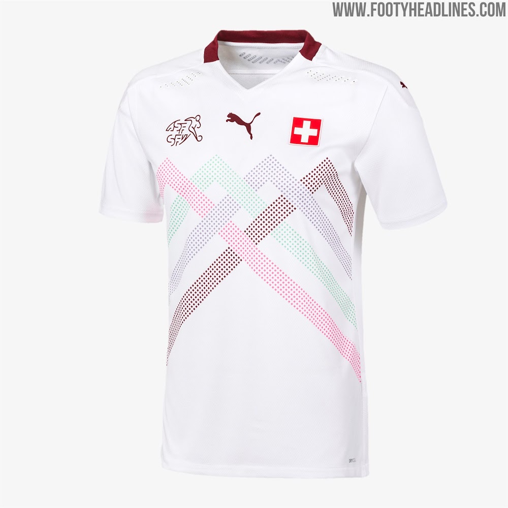 Das neue Schweiz EM 2020 Trikot ist weiß mit einer einzigartigen und auffälligen Grafik auf der Vorderseite, wobei es auf dem gleichen Template wie die Österreich- und Italien-Trikots basiert - es ist ein ähnlicher Stil wie auf dem aufgetauchten Heimtrikot.