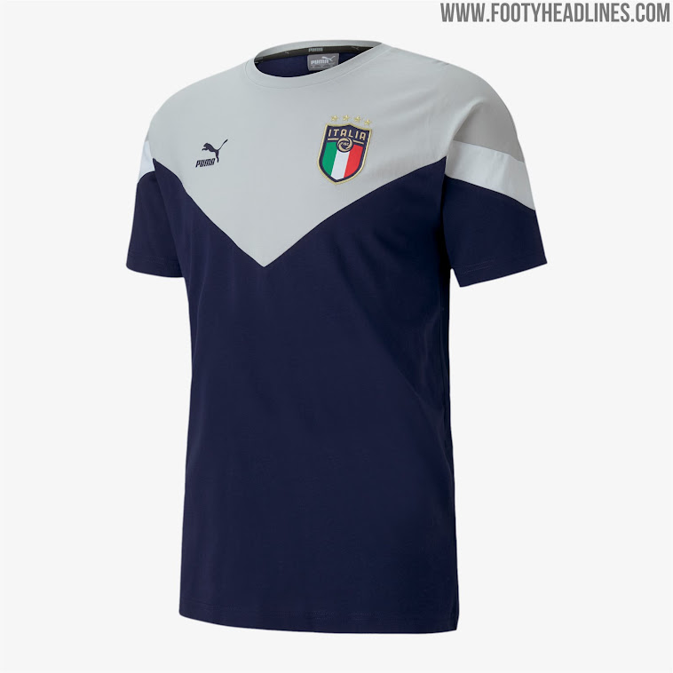Together with the classy new Italy 2020 away kit, Puma has updated the already excellent off-pitch collection of the Azurri. Included are the same kind of items that we saw in the 'Renaissance' collection last month, but with new colorways and patterns.