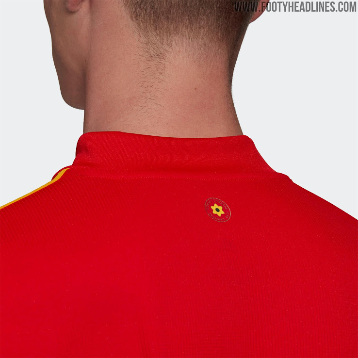Das Adidas Wales 2020 Trikot ist rot und hat einen klassischen Look, der von früheren Trikots inspiriert ist. Das vereinfachte Wales-Wappen befindet sich auf der linken Brust.