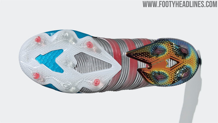Die Kombination vieler verschiedener Styles und Farben schafft einen mutigen und spektakulären Look, der die Meinungen der Adidas Fußballschuh-Fangemeinde sicherlich spalten wird.