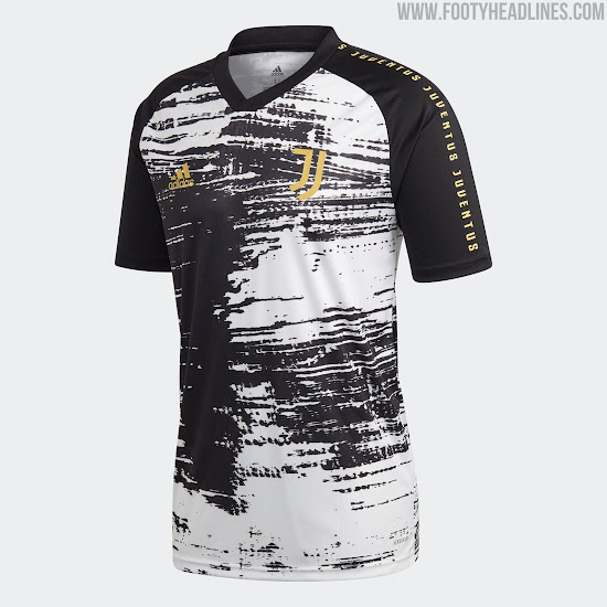 Basierend auf dem mutigen neuen Pinselstrich-Template von Adidas kombiniert das neue Juventus 20-21 Aufwärm-Trikot eine schwarz-weiße Grundlage mit goldenen Details - das gleiche Farbschema, das auch für das Juventus 2020-21 Heimtrikot verwendet wird.