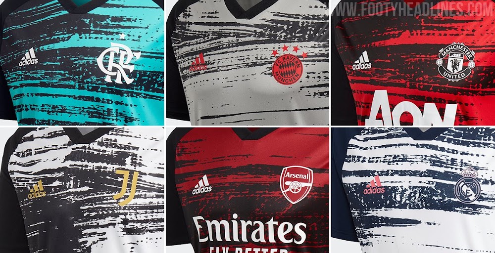 Alle Adidas 20-21 Aufwärmtrikots der Top-Klubs - Arsenal, Bayern, Flamengo, Juventus, Manchester United & Real Madrid