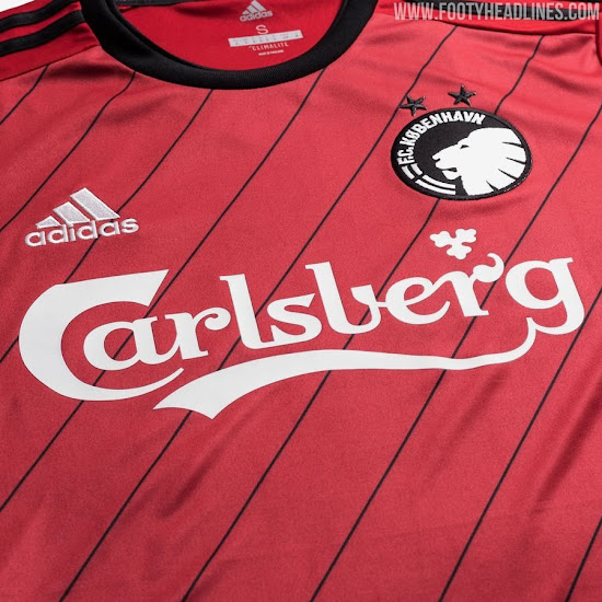 Das neue Kopenhagen 2019-2020 Trikot ist rot mit schwarzen Diagonalstreifen und weißen Details, wobei es mittels miadidas erschaffen wurde.