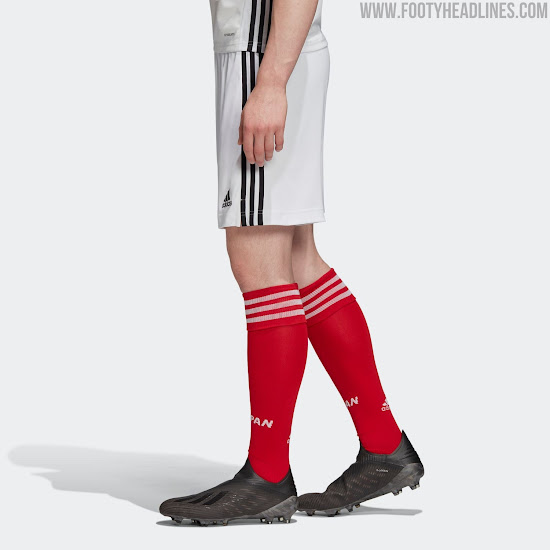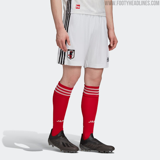 Adidas kombiniert das Japan 2020-2021 Trikot mit weißen Hosen und roten Stutzen.