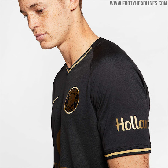 Das neue dritte Kaizer Chiefs 2019-2020 Fußballtrikot feiert das 50-jährige Bestehen des südafrikanischen Klubs mit einem stilvollen Design in Schwarz und Gold.