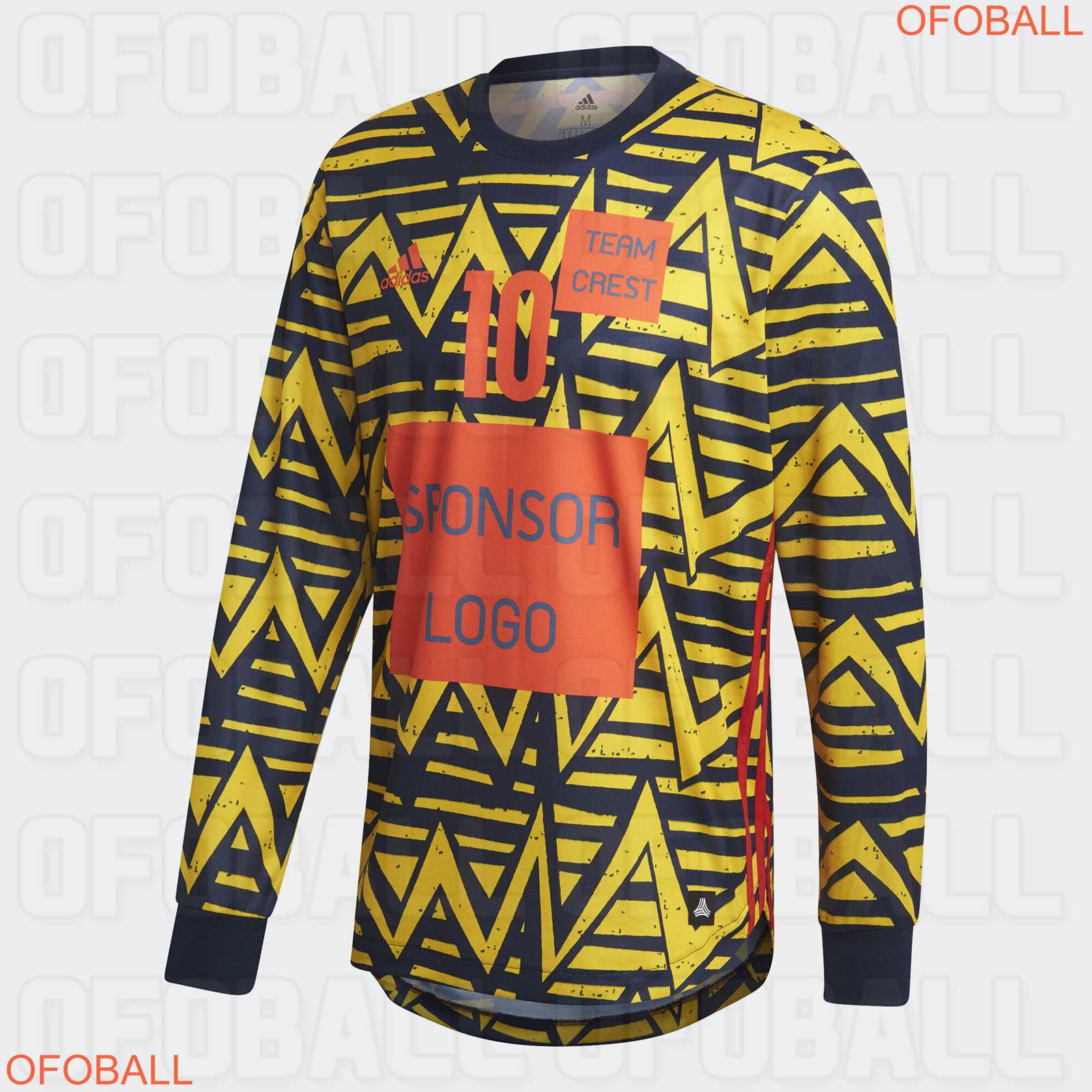 Das Adidas Tango 2020 "Off-White" Shirt hat ein verrücktes Design, das vom kultigen Arsenal Bruised Banana Trikot inspiriert wurde. Das neue Adidas Tango 2020 Fußballtrikot ist gelb mit einem marineblauen Grafikdesign. Die Details sind in Orange gehalten.
