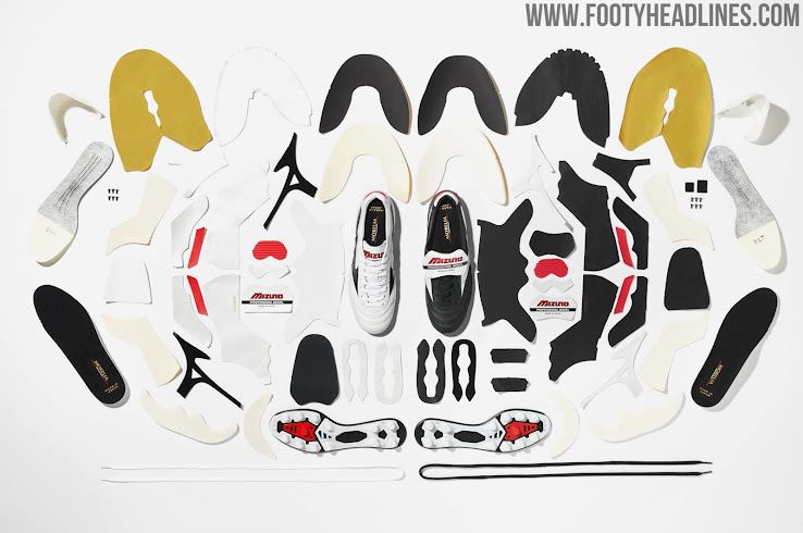 Zum einen wurde der klassische schwarz-weiß-rote Mizuno Morelia Fußballschuh mit einem schmaleren Fersenbereich für eine bessere Passform aktualisiert. Weitere Updates des OG-Schuhs sind "Micro-Taft", der für eine langlebigere Passform an das K-Leder-Obermaterial angepasst wurde, eine etwas kleinere Zunge sowie einige kleinere Brandings, die an Sohle und Schnürsenkeln angebracht wurden.