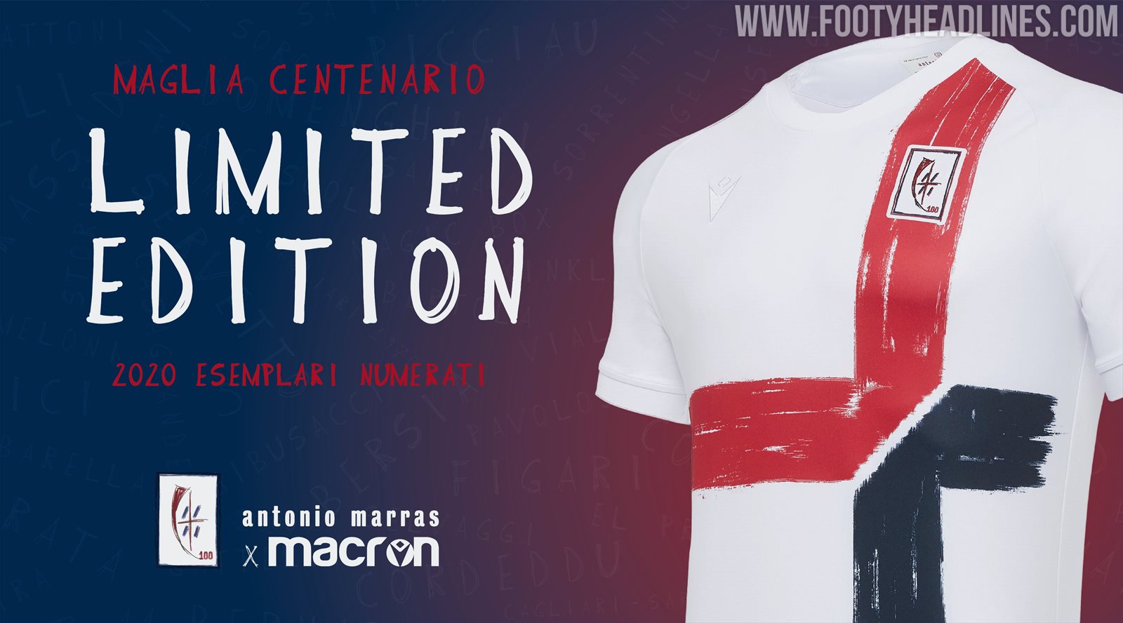 Das Macron Cagliari 2020 Jahrhundert-Trikot wird in 2020 nummerierten Stücken hergestellt und mit einer speziellen Verpackung für 150 Euro verkauft.