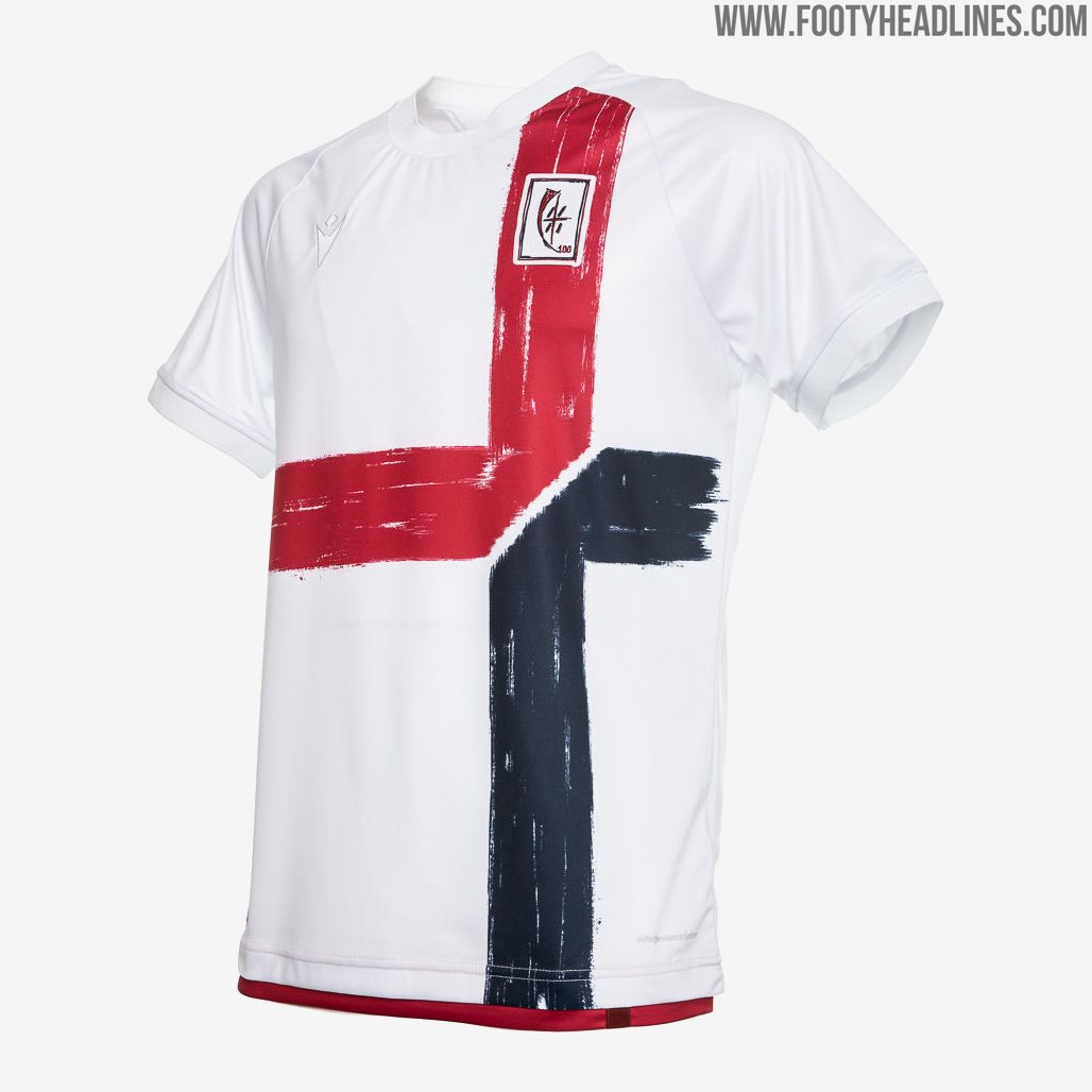 Das ist das neue Macron Cagliari Jahrhundert-Fußballtrikot.