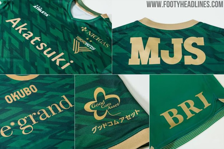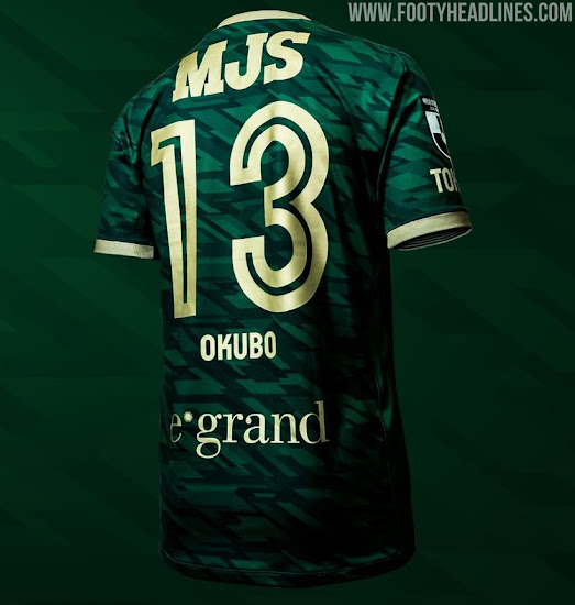 Das Trikot hat einen V-Kragen, goldene Logos und golden-grüne Ärmelbündchen. Die Schriftart "Tokyo ONE" der Marke Tokyo Verdi wird weiterhin für einheitliche Nummern und Namen verwendet, um das Gefühl der Einheit zu verstärken.