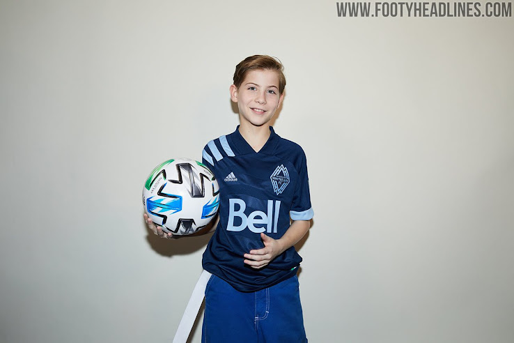 Das Vancouver Whitecaps 2020 Trikot von Adidas ist überwiegend "Deep Sea", ein dunkles Blau.