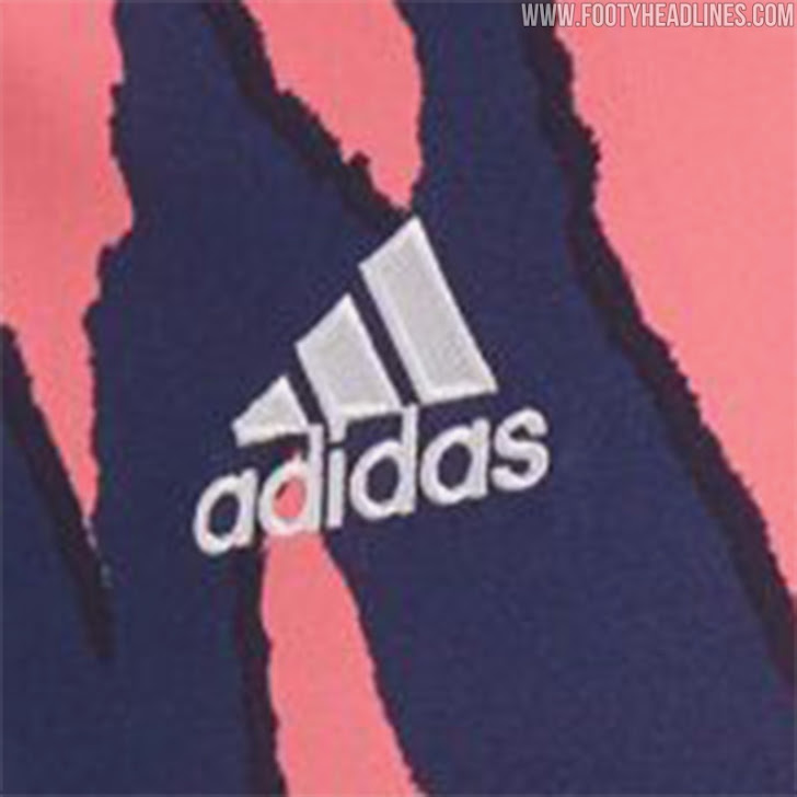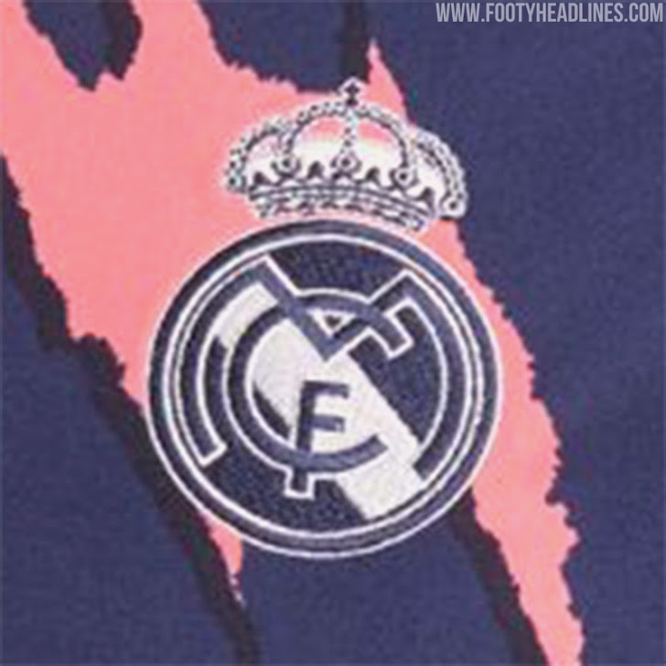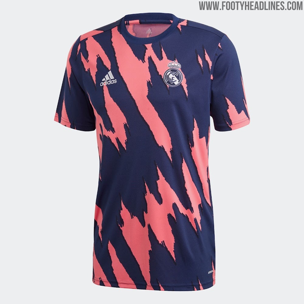 Das Trikot von Adidas Real Madrid 2020 vor dem Spiel hat einen grellen Look in Navy und Pink. Inspiriert durch das Trikot des Vereins, soll das Printdesign 'Tiger'-Streifen zeigen - ein ähnliches Design befindet sich im Kragen des Madrid 20-21 Heimtrikots.