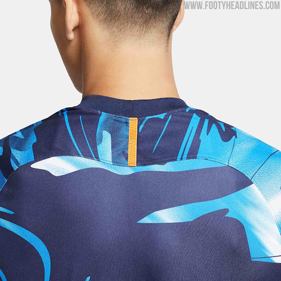 Das Nike Red Bull Leipzig 2020-21 Trikot führt ein absolut herausragendes Design ein. Das Shirt, das überwiegend "Midnight Navy" ist, weist einen allumfassenden Graffitidruck in verschiedenen Blautönen auf.
