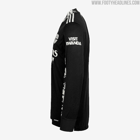 Das Adidas Arsenal 2020-2021 Torwart-Trikot ist überwiegend schwarz mit Logos und Drei Streifen in "Cloud White" - das ist die Farbe des Arsenal 20-21 Auswärtstrikots.