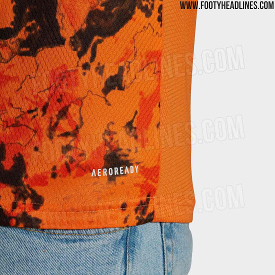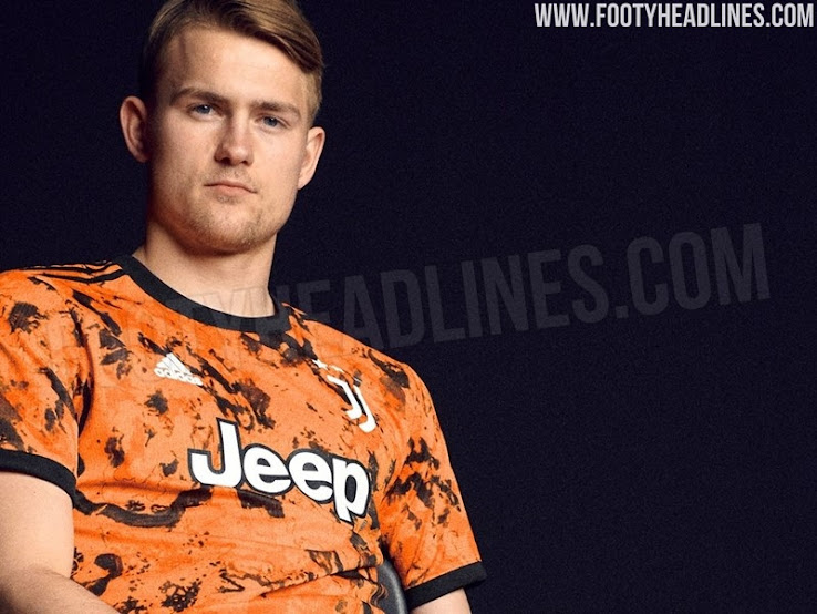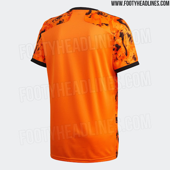 Das neue Juventus 2020-21 Trikot zeichnet sich durch ein auffälliges Design in Orange und Schwarz aus. Es hat ein kontrastierendes schwarzes Grafikdesign auf der Vorderseite.