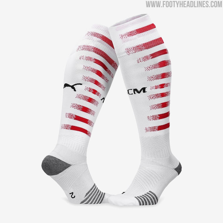 Weiße Hosen und Stutzen vervollständigen das neue Puma Milan 20-21 Trikot.