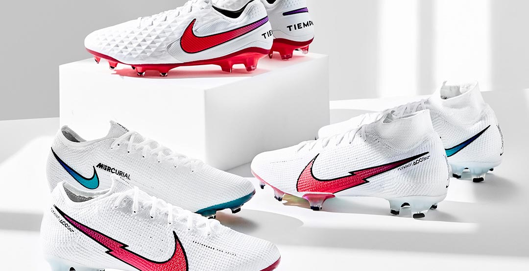 Alle drei Nike-Modelle ab der Saison 2020-2021 - Phantom GT, Mercurial und Tiempo - werden im Pack enthalten sein. Es gibt bisher keine Bilder der weißen Phantom GT Schuhe, aber wir haben bereits Mercurial und Tiempo zu Gesicht bekommen.