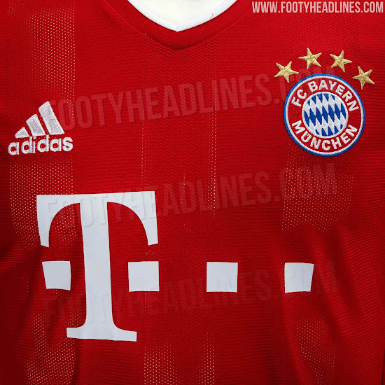 Das neue Bayern München 2020-2021 Fußballtrikot trägt zwei verschiedene Stoffe, die einen subtilen Streifeneffekt erschaffen.