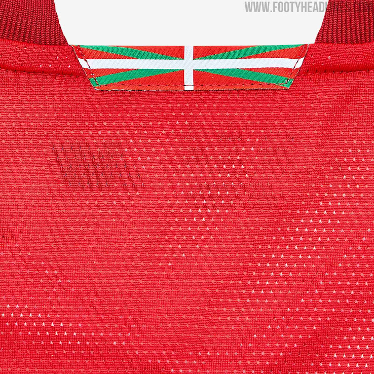 Die Streifen sind auch auf den Ärmeln und auf der unteren Rückseite des Trikots vorhanden, während der obere Teil der Rückseite zur besseren Lesbarkeit des Spielernamens und der Nummer einfarbig rot ist. Zu guter Letzt befindet sich die baskische Flagge auf der Rückseite im Bereich des Kragens.
