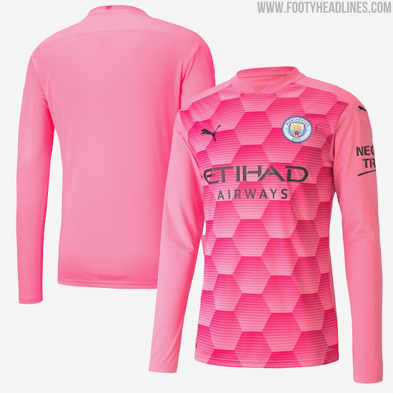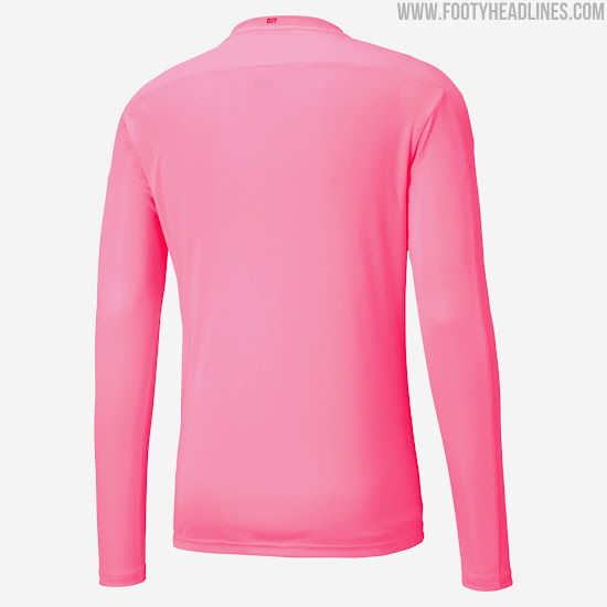 Das dritte Puma Manchester City 2020-21 Torwart-Trikot ist pink mit schwarzen Logos.