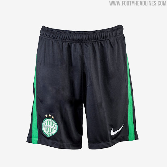Schwarze Hosen und Stutzen vervollständigen das neue Nike Ferencvaros 2020-2021 Trikot.