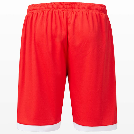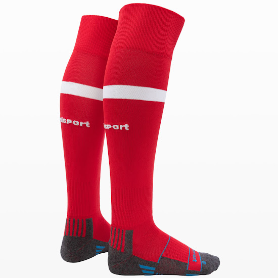 Rote Hosen und Stutzen runden das Erscheinungsbild des Fortuna Düsseldorf 2020-2021 Trikots von Uhlsport ab.