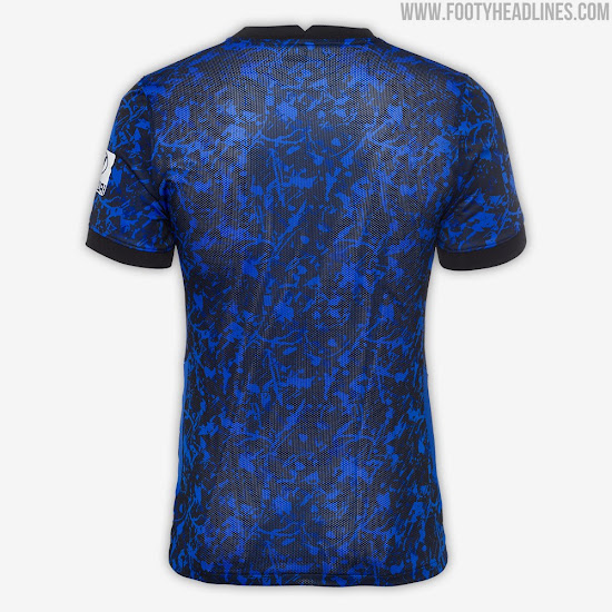 Das Nike Hertha BSC 2020-21 Trikot führt ein mutiges Design ein: Es ist blau mit einem durchgehenden Farbspritzmuster. Der Kragen und die Ärmelbündchen sind schwarz, während das Nike Swoosh Logo weiß ist.