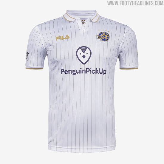Das Fila Maccabi Tel Aviv 2020-2021 Trikot wird aus der letzten Saison übernommen und ist weiß mit subtilen goldenen Nadelstreifen.