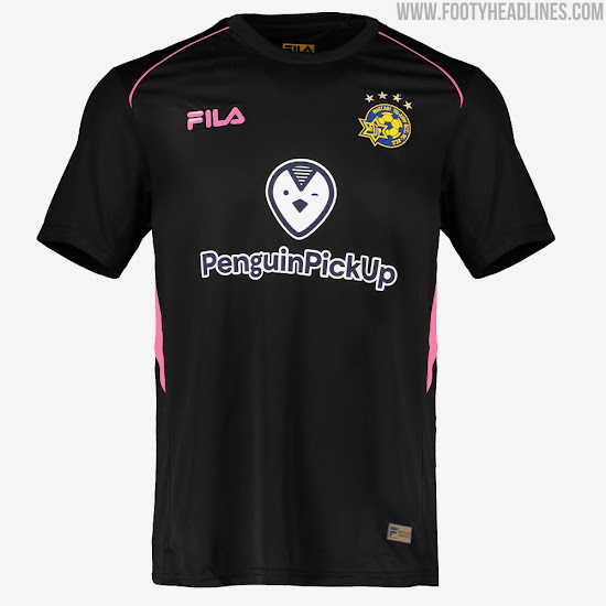 Das Fila Maccabi Tel Aviv 20-21 Torwart-Trikot ist in zwei Farben erhältlich: einmal hauptsächlich weiß mit marineblauen Verzierungen, während die andere Variante schwarz mit rosa Details ist.