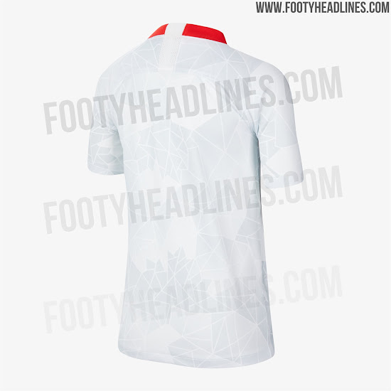 Das zweite Kanada 20-21 Fussballtrikot, das auf der gleichen Vorlage basiert, ist weiß mit der Grafik in Grautönen. Der Kragen ist rot, genauso wie der Swoosh auf der Brust.