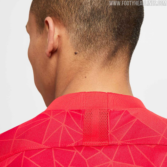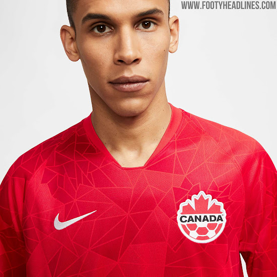 Das Nike Kanada 2020 Trikot, das einen schlichten Look einführt, ist vollkommen rot mit einem subtilen, vom Ahornblatt inspirierten, geometrischen, allumfassenden Druck.