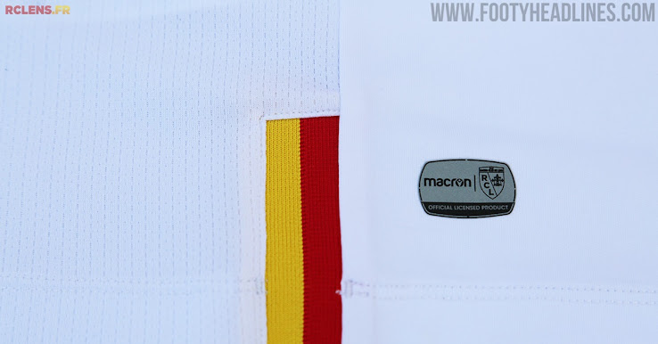 Der Kragen ist in der gleichen Weise wie der Streifen geteilt, während die Ärmelbündchen des Macron RC Lens 2020-2021 Trikots rot-gelb sind.